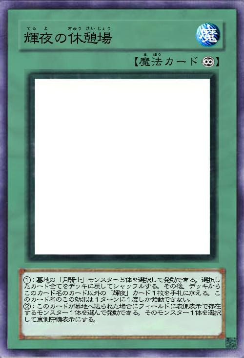 | ①:墓地の「月騎士」モンスター5体を選択して発動できる。選択したカード全てをデッキに戻してシャッフルする。その後、デッキからこのカード名のカード以外の「輝夜」カード1枚を手札に加える。このカード名のこの効果は1ターンに1度しか発動できない。 ②:このカードが墓地へ送られた場合にフィールドに表側表示で存在するモンスター1体を選んで発動できる。そのモンスター1体を選択して裏側守備表示にする。 | |||