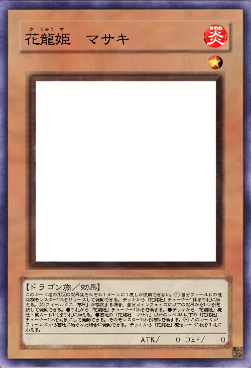 | このカード名の①②の効果はそれぞれ1ターンに1度しか使用できない。①:自分フィールドの植物族モンスター1体をリリースして発動できる。デッキから「花龍姫」チューナー1体を手札に加える。②:フィールドに「草原」が存在する場合、自分メインフェイズに以下の効果から1つを選択して発動できる。●手札から「花龍姫」チューナー1体を召喚する。●デッキから「花龍姫」魔法・罠カード1枚を手札に加える。●墓地の「花龍姫 マサキ」以外のレベル5以下の「花龍姫」チューナー1体を対象にして発動できる。そのモンスター1体を特殊召喚する。③:このカードがフィールドから墓地に送られた場合に発動できる。デッキから「花龍姫」魔法カード1枚を手札に加える。 | |||