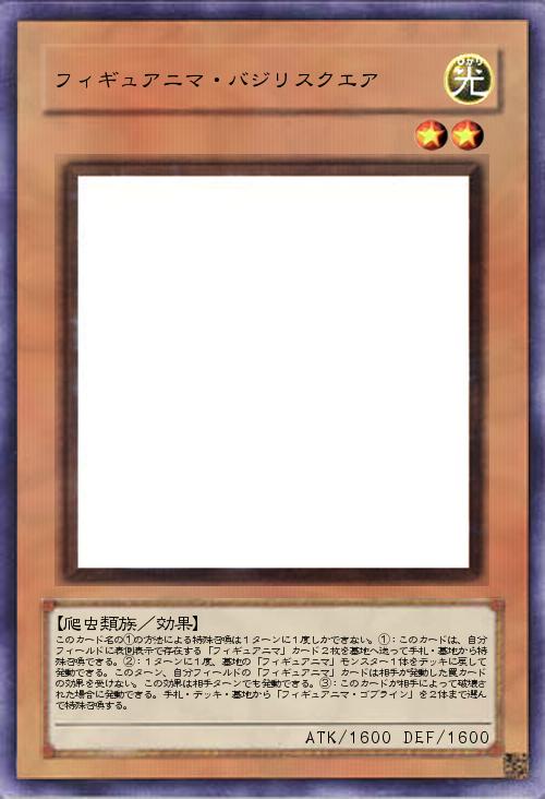 | このカード名の①の方法による特殊召喚は1ターンに1度しかできない。①:このカードは、自分フィールドに表側表示で存在する「フィギュアニマ」カード2枚を墓地へ送って手札・墓地から特殊召喚できる。②:1ターンに1度、墓地の「フィギュアニマ」モンスター1体をデッキに戻して発動できる。このターン、自分フィールドの「フィギュアニマ」カードは相手が発動した罠カードの効果を受けない。この効果は相手ターンでも発動できる。③:このカードが相手によって破壊された場合に発動できる。手札・デッキ・墓地から「フィギュアニマ・ゴブライン」を2体まで選んで特殊召喚する。 | |||