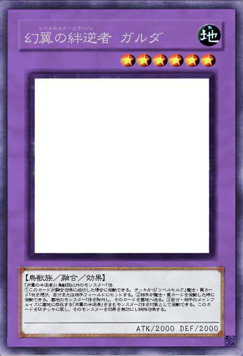 | 「片翼の半逆者」+鳥獣族以外のモンスター1体 ①このカードが融合召喚に成功した場合に発動できる。デッキから「リベルセルク」魔法・罠カード1枚を選び、自分または相手フィールドにセットする。②相手が魔法・罠カードを発動した時に発動できる。墓地のモンスター1体を除外し、そのカードを墓地へ送る。③自分・相手のメインフェイズに墓地に存在する「片翼の半逆者」を含むモンスター2体を対象として発動できる。このカードをEXデッキに戻し、そのモンスターを効果を無効にし特殊召喚する。 | |||