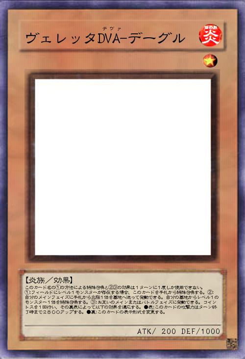 | このカード名の①の方法による特殊召喚と②③の効果は1ターンに1度しか使用できない。 ①:フィールドにレベル1モンスターが存在する場合、このカードを手札から特殊召喚する。②:自分のメインフェイズに手札から炎族1体を墓地へ送って発動できる。自分の墓地からレベル1のモンスター1体を特殊召喚する。③:お互いのメインまたはバトルフェイズに発動できる。コイントスを1回行い、その裏表によって以下の効果を適応する。●表:このカードの攻撃力はターン終了時まで2800アップする。●裏:このカードの表示形式を変更する。 | |||