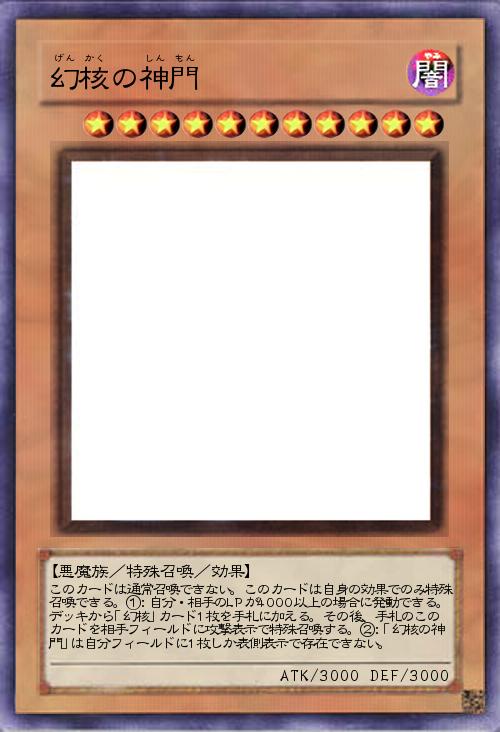 | このカードは通常召喚できない。このカードは自身の効果でのみ特殊召喚できる。①:自分・相手のLPが4000以上の場合に発動できる。デッキから「幻核」カード1枚を手札に加える。その後、手札のこのカードを相手フィールドに攻撃表示で特殊召喚する。②:「幻核の神門」は自分フィールドに1枚しか表側表示で存在できない。 | |||