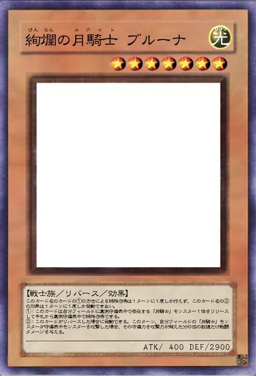 | このカード名のカードの①の方法による特殊召喚は1ターンに1度しか行えず、このカード名の②の効果は1ターンに1度しか発動できない。 ①:このカードは自分フィールドに裏側守備表示で存在する「月騎士」モンスター1体をリリースして手札から裏側守備表示で特殊召喚できる。 ②:このカードがリバースした場合に発動できる。このターン、自分フィールドの「月騎士」モンスターが守備表示モンスターを攻撃した場合、その守備力を攻撃力が超えた分の倍の数値だけ戦闘ダメージを与える。 | |||