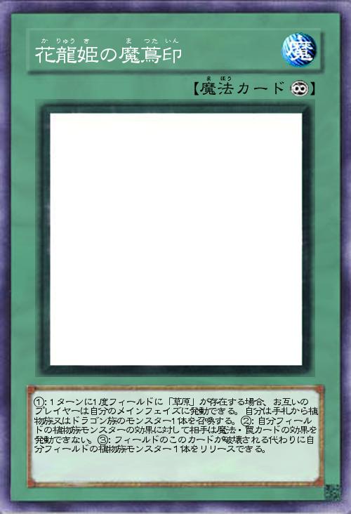 | ①:1ターンに1度フィールドに「草原」が存在する場合、お互いのプレイヤーは自分のメインフェイズに発動できる。自分は手札から植物族又はドラゴン族のモンスター1体を召喚する。②:自分フィールドの植物族モンスターの効果に対して相手は魔法・罠カードの効果を発動できない。③:フィールドのこのカードが破壊される代わりに自分フィールドの植物族モンスター1体をリリースできる。 | |||