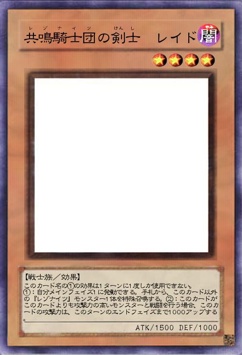 ①:自分メインフェイズ1に発動できる。手札から、「共鳴騎士団の剣士 レイド」以外の「レゾナイツ」モンスター1体を特殊召喚する。