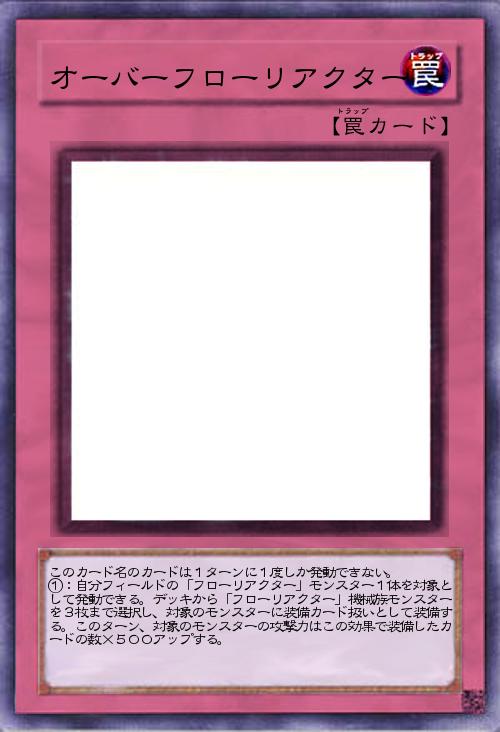 | このカード名のカードは1ターンに1度しか発動できない。 ①:自分フィールドの「フローリアクター」モンスター1体を対象として発動できる。デッキから「フローリアクター」機械族モンスターを3枚まで選択し、対象のモンスターに装備カード扱いとして装備する。このターン、対象のモンスターの攻撃力はこの効果で装備したカードの数×500アップする。 | |||