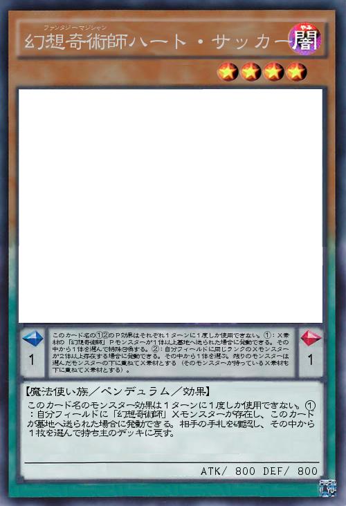 | このカード名の①②のP効果はそれぞれ1ターンに1度しか使用できない。①:X素材の「幻想奇術師」Pモンスターが1体以上墓地へ送られた場合に発動できる。その中から1体を選んで特殊召喚する。②:自分フィールドに同じランクのXモンスターが2体以上存在する場合に発動できる。その中から1体を選ぶ。残りのモンスターは選んだモンスターの下に重ねてX素材とする(そのモンスターが持っているX素材も下に重ねてX素材とする)。 | |||