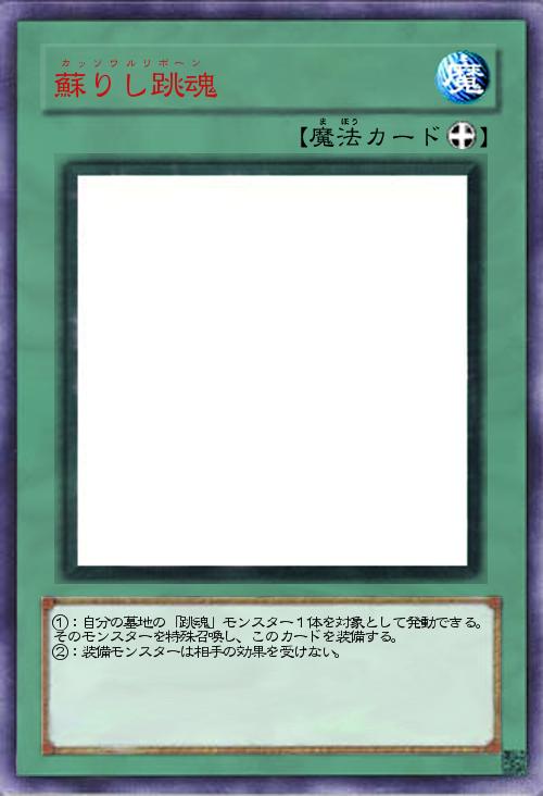 | ①:自分の墓地の「跳魂」モンスター1体を対象として発動できる。そのモンスターを特殊召喚し、このカードを装備する。 ②:装備モンスターは相手の効果を受けない。 | |||