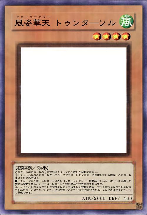 | このカード名のカードの②の効果は1ターンに1度しか発動できない。 ①:フィールドのこのカードが「フローリアクター」モンスターを装備している場合、このカードは以下の効果を得る。 ●:1ターンに1度、このカード以外の「フローリアクター」植物族モンスターがデッキに戻った場合に発動できる。フィールドのカード1枚を選んで持ち主の手札に戻す。 ②:フィールドのこのカードを持ち主のデッキに戻して発動できる。デッキからこのカード名のカード以外の「フローリアクター」植物族モンスター1体を特殊召喚する。この効果は相手ターンでも発動できる。 | |||