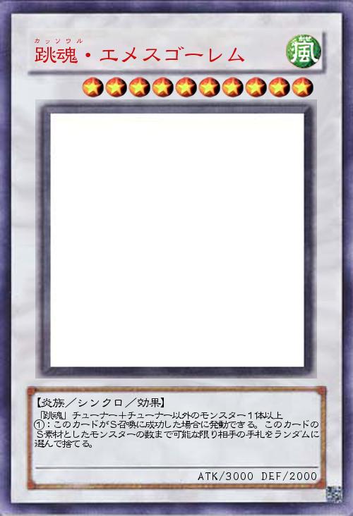 | 「跳魂」チューナー+チューナー以外のモンスター1体以上 ①:このカードがS召喚に成功した場合に発動できる。このカードのS素材としたモンスターの数まで可能な限り相手の手札をランダムに選んで捨てる。 | |||