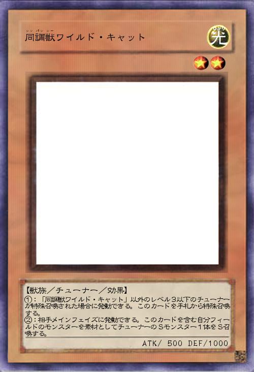 | ①:「同調獣ワイルド・キャット」以外のレベル3以下のチューナーが特殊召喚された場合に発動できる。このカードを手札から特殊召喚する。 ②:相手メインフェイズに発動できる。このカードを含む自分フィールドのモンスターを素材としてチューナーのSモンスター1体をS召喚する。 | |||