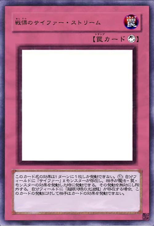 「ネオサイファードラゴンの必殺技をカードにしました。サイファーXモンスターがいる時にカード効果の発動を無効にして除外するカード。ネオサイファーがいる時に限り、チェーン封じが行えます。」(2020-09-01 11:08)