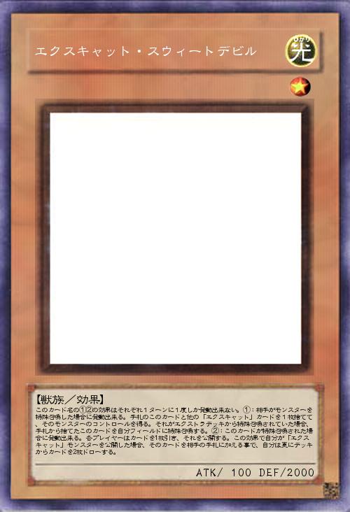 | このカード名の①②の効果はそれぞれ1ターンに1度しか発動出来ない。①:相手がモンスターを特殊召喚した場合に発動出来る。手札のこのカードと他の「エクスキャット」カードを1枚捨てて、そのモンスターのコントロールを得る。それがエクストラデッキから特殊召喚されていた場合、手札から捨てたこのカードを自分フィールドに特殊召喚する。②:このカードが特殊召喚された場合に発動出来る。各プレイヤーはカードを1枚引き、それを公開する。この効果で自分が「エクスキャット」モンスターを公開した場合、そのカードを相手の手札に加える事で、自分は更にデッキからカードを2枚ドローする。 | |||