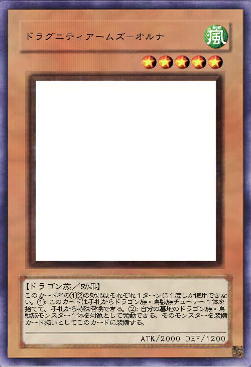 「レベル5のドラグニティがいないので作りました。名前の由来はフォモール族の王の剣オルナ。ドラゴン族か鳥獣族チューナーをコストにしての特殊召喚、墓地のドラゴン族か鳥獣族を装備できます。」(2020-09-02 23:08)