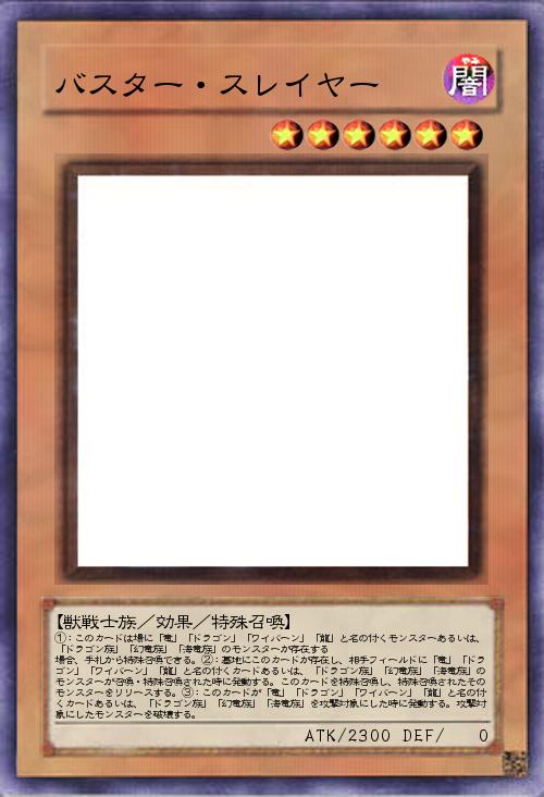 | ①:このカードは場に「竜」「ドラゴン」「ワイバーン」「龍」と名の付くモンスターあるいは、「ドラゴン族」「幻竜族」「海竜族」のモンスターが存在する 場合、手札から特殊召喚できる。②:墓地にこのカードが存在し、相手フィールドに「竜」「ドラゴン」「ワイバーン」「龍」と名の付くカードあるいは、「ドラゴン族」「幻竜族」「海竜族」のモンスターが召喚・特殊召喚された時に発動する。このカードを特殊召喚し、特殊召喚されたそのモンスターをリリースする。③:このカードが「竜」「ドラゴン」「ワイバーン」「龍」と名の付くカードあるいは、「ドラゴン族」「幻竜族」「海竜族」を攻撃対象にした時に発動する。攻撃対象にしたモンスターを破壊する。 | |||