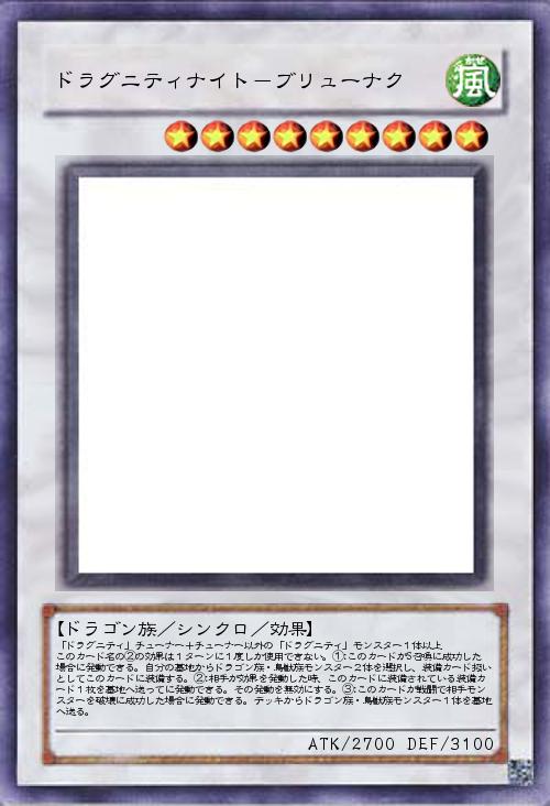 「名前の由来はケルト神話のルグ神が所持していたとされる槍、ブリューナク。チューナー非チューナー共にドラグニティ縛りのあるモンスター。S召喚した際にドラゴン族か鳥獣族2体を自身に装備し、装備カードをコストにしての効果の発動無効化、相手モンスターを戦闘破壊した際にドラゴン族か鳥獣族を墓地へ落とせます。」(2020-09-07 00:37)