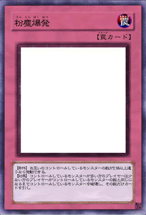 | 【条件】お互いのコントロールしているモンスターの数が2体以上違うなら発動できる。 【効果】コントロールしているモンスターが多い方のプレイヤーは少ない方のプレイヤーがコントロールしているモンスターの数と同じになるまでコントロールしているモンスターを破壊し、その数だけカードを引く。 | |||