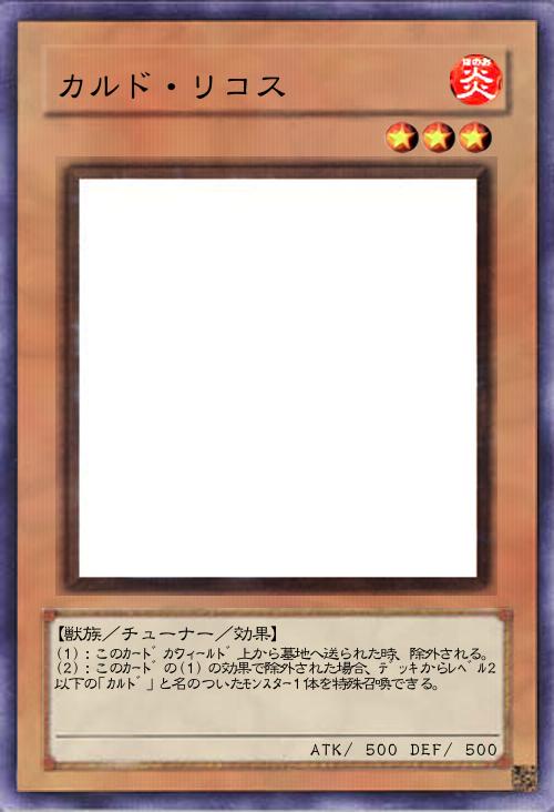 | (1):このカードがフィールド上から墓地へ送られた時、除外される。 (2):このカードの(1)の効果で除外された場合、デッキからレベル2以下の「カルド」と名のついたモンスター1体を特殊召喚できる。 | |||