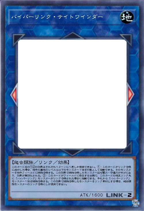 | このカード名の①②の効果はそれぞれ1ターンに1度しか使用できない。①:このカードがリンク召喚に成功した場合、相手の墓地のレベル4以下のモンスター1体を対象として発動できる。そのモンスターを相手フィールドに特殊召喚する。この効果で特殊召喚したモンスターは攻撃力・守備力が半分になり、効果が無効化される。②:このカードがフィールドに存在する状態で、このカードの相互リンク先に「バイパーリンク」モンスターがリンク召喚された場合に発動できる。手札から「バイパーリンク」モンスター1体を特殊召喚する。この効果で特殊召喚したモンスターをリンク素材とする場合、爬虫類族モンスターのリンク召喚にしか使用できない。 | |||