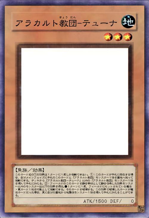 | このカード名の①の効果は1ターンに1度しか発動できない。①:このカードが手札に存在する場合、自分メインフェイズに手札のこのカードと「アラカルト教団」モンスター1体を墓地へ送って発動できる。デッキから「アラカルト教団-テューナ」以外の「アラカルト教団」モンスター1体を選んで手札に加える。②:フィールドのこのカードを融合素材として融合召喚した効果モンスター以外のモンスターは以下の効果を得る。●1ターンに1度、フィールドにセットされている魔法・罠カード1枚を対象として発動できる。そのカードを破壊する。この効果で破壊したカードが魔法カードだった場合、更に自分の墓地から地属性モンスター1体を選んで手札に加えることができる。 | |||