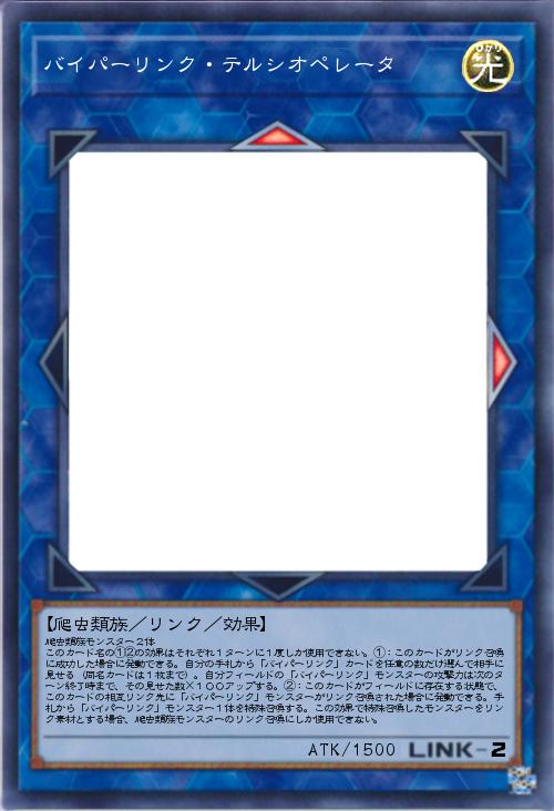 | 爬虫類族モンスター2体 このカード名の①②の効果はそれぞれ1ターンに1度しか使用できない。①:このカードがリンク召喚に成功した場合に発動できる。自分の手札から「バイパーリンク」カードを任意の数だけ選んで相手に見せる(同名カードは1枚まで)。自分フィールドの「バイパーリンク」モンスターの攻撃力は次のターン終了時まで、その見せた数×100アップする。②:このカードがフィールドに存在する状態で、このカードの相互リンク先に「バイパーリンク」モンスターがリンク召喚された場合に発動できる。手札から「バイパーリンク」モンスター1体を特殊召喚する。この効果で特殊召喚したモンスターをリンク素材とする場合、爬虫類族モンスターのリンク召喚にしか使用できない。 | |||