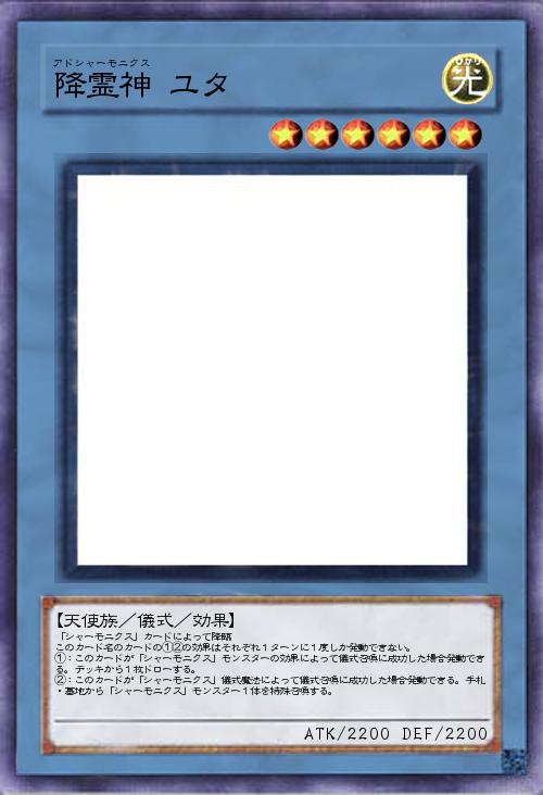 | 「シャーモニクス」カードによって降臨 このカード名のカードの①②の効果はそれぞれ1ターンに1度しか発動できない。 ①:このカードが「シャーモニクス」モンスターの効果によって儀式召喚に成功した場合発動できる。デッキから1枚ドローする。 ②:このカードが「シャーモニクス」儀式魔法によって儀式召喚に成功した場合発動できる。手札・墓地から「シャーモニクス」モンスター1体を特殊召喚する。 | |||