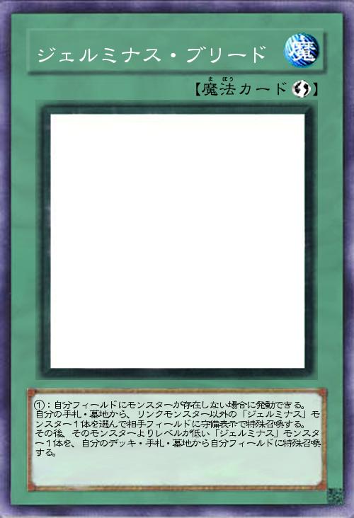 | ①:自分フィールドにモンスターが存在しない場合に発動できる。 自分の手札・墓地から、リンクモンスター以外の「ジェルミナス」モンスター1体を選んで相手フィールドに守備表示で特殊召喚する。 その後、そのモンスターよりレベルが低い「ジェルミナス」モンスター1体を、自分のデッキ・手札・墓地から自分フィールドに特殊召喚する。 | |||