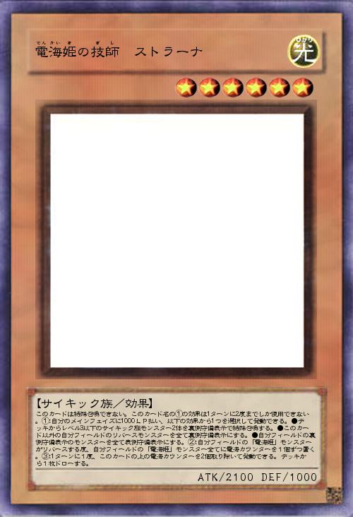 | このカードは特殊召喚できない。このカード名の①の効果は1ターンに2度までしか使用できない。①:自分のメインフェイズに1000LP払い、以下の効果から1つを選択して発動できる。●デッキからレベル3以下のサイキック族モンスター2体を裏側守備表示で特殊召喚する。●このカード以外の自分フィールドのリバースモンスターを全て裏側守備表示にする。●自分フィールドの裏側守備表示のモンスターを全て表側守備表示にする。②:自分フィールドの「電海姫」モンスターがリバースする度、自分フィールドの「電海姫」モンスター全てに電海カウンターを1個ずつ置く。③:1ターンに1度、このカードの上の電海カウンターを2個取り除いて発動できる。デッキから1枚ドローする。 | |||