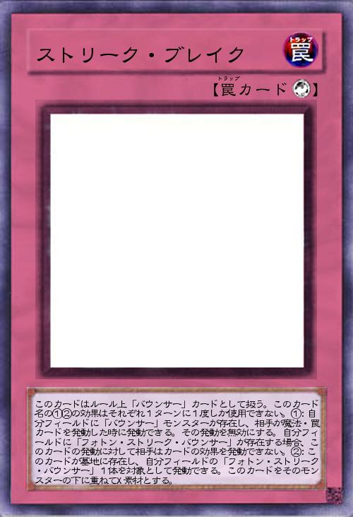 「フォトン・ストリーク・バウンサーの効果名をカードにしました。バウンサーモンスターがいる時に魔法・罠カードの発動を無効化し、フォトン・ストリーク・バウンサーがいる時に限り、チェーン封じが発生します。墓地にある時はフォトン・ストリーク・バウンサーのX素材になります。」(2020-09-22 11:37)