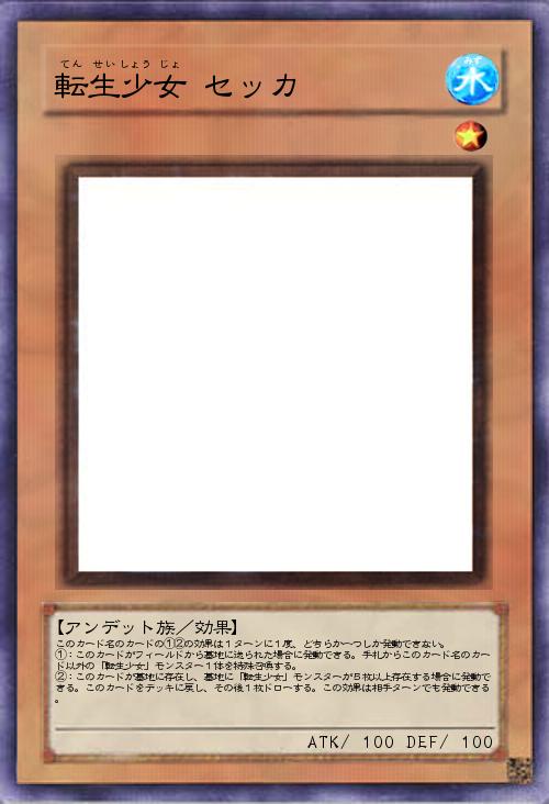 | このカード名のカードの①②の効果は1ターンに1度、どちらか一つしか発動できない。 ①:このカードがフィールドから墓地に送られた場合に発動できる。手札からこのカード名のカード以外の「転生少女」モンスター1体を特殊召喚する。 ②:このカードが墓地に存在し、墓地に「転生少女」モンスターが5枚以上存在する場合に発動できる。このカードをデッキに戻し、その後1枚ドローする。この効果は相手ターンでも発動できる。 | |||