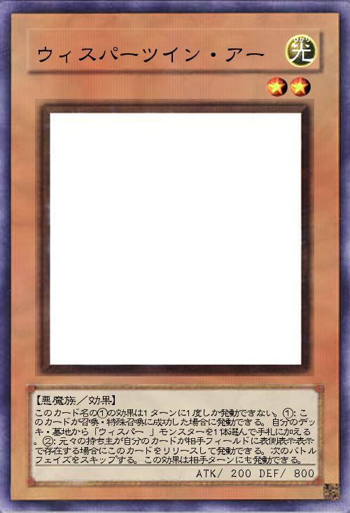 | このカード名の①の効果は1ターンに1度しか発動できない。①:このカードが召喚・特殊召喚に成功した場合に発動できる。自分のデッキ・墓地から「ウィスパー 」モンスターを1体選んで手札に加える。②:元々の持ち主が自分のカードが相手フィールドに表側表示表示で存在する場合にこのカードをリリースして発動できる。次のバトルフェイズをスキップする。この効果は相手ターンにも発動できる。 | |||