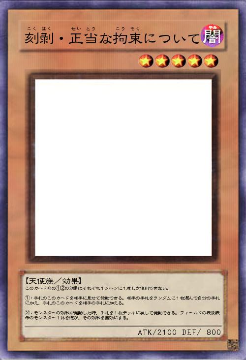 | このカード名の①②の効果はそれぞれ1ターンに1度しか使用できない。 ①:手札のこのカードを相手に見せて発動できる。相手の手札をランダムに1枚選んで自分の手札に加え、手札のこのカードを相手の手札に加える。 ②:モンスターの効果が発動した時、手札を1枚デッキに戻して発動できる。フィールドの表側表示のモンスター1体を選び、その効果を無効にする。 | |||