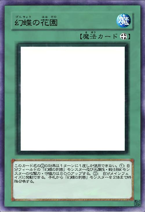 「幻蝶の刺客関連のフィールド魔法。幻蝶の刺客と光属性の戦士族Xモンスターの攻守強化、手札から幻蝶の刺客を2体特殊召喚できます。」(2020-09-26 10:22)