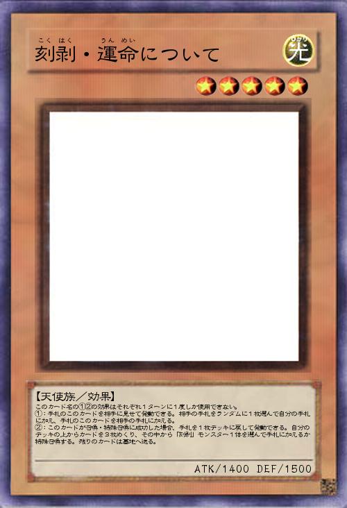 | このカード名の①②の効果はそれぞれ1ターンに1度しか使用できない。 ①:手札のこのカードを相手に見せて発動できる。相手の手札をランダムに1枚選んで自分の手札に加え、手札のこのカードを相手の手札に加える。 ②:このカードが召喚・特殊召喚に成功した場合、手札を1枚デッキに戻して発動できる。自分のデッキの上からカードを3枚めくり、その中から「刻剥」モンスター1体を選んで手札に加えるか特殊召喚する。残りのカードは墓地へ送る。 | |||