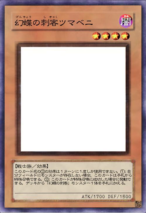 | このカード名の②の効果は1ターンに1度しか使用できない。①:自分フィールドにモンスターが存在しない場合、このカードは手札から特殊召喚できる。②:このカードが特殊召喚に成功した場合に発動できる。デッキから「幻蝶の刺客」モンスター1体を手札に加える。 | |||