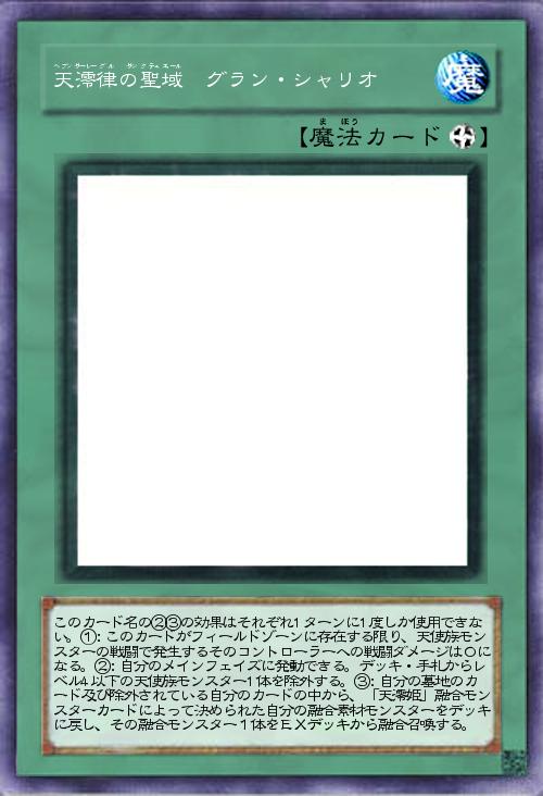 | このカード名の②③の効果はそれぞれ1ターンに1度しか使用できない。①:このカードがフィールドゾーンに存在する限り、天使族モンスターの戦闘で発生するそのコントローラーへの戦闘ダメージは0になる。②:自分のメインフェイズに発動できる。デッキ・手札からレベル4以下の天使族モンスター1体を除外する。③:自分の墓地のカード及び除外されている自分のカードの中から、「天澪姫」融合モンスターカードによって決められた自分の融合素材モンスターをデッキに戻し、その融合モンスター1体をEXデッキから融合召喚する。 | |||