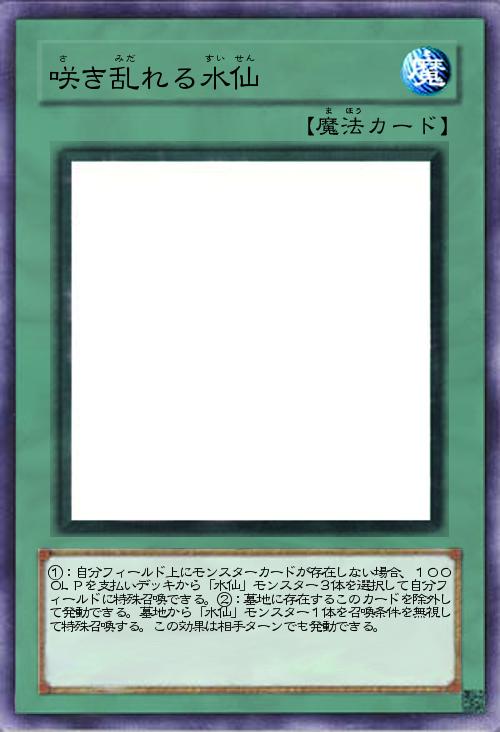 | ①:自分フィールド上にモンスターカードが存在しない場合、1000LPを支払いデッキから「水仙」モンスター3体を選択して自分フィールドに特殊召喚できる。②:墓地に存在するこのカードを除外して発動できる。墓地から「水仙」モンスター1体を召喚条件を無視して特殊召喚する。この効果は相手ターンでも発動できる。 | |||