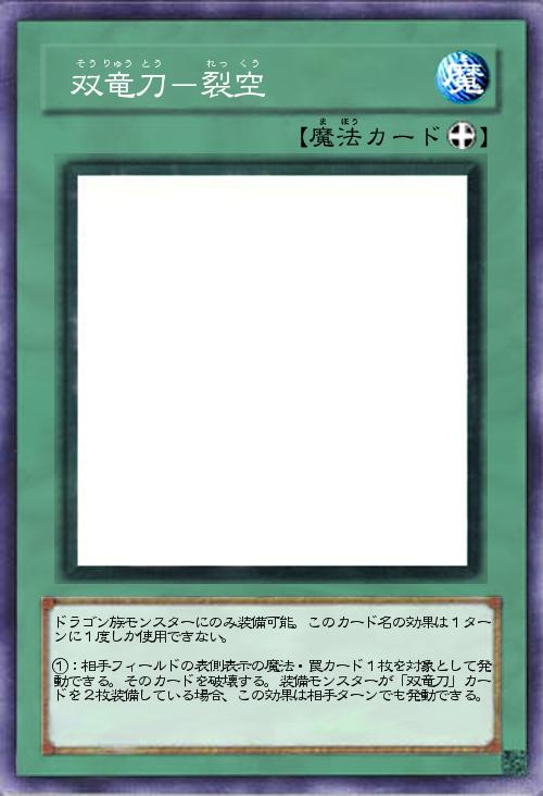| ドラゴン族モンスターにのみ装備可能。このカード名の効果は1ターンに1度しか使用できない。 ①:相手フィールドの表側表示の魔法・罠カード1枚を対象として発動できる。そのカードを破壊する。装備モンスターが「双竜刀」カードを2枚装備している場合、この効果は相手ターンでも発動できる。 | |||