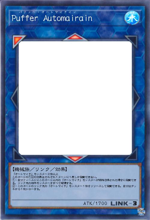 | 「オートマイラ」モンスター2体以上 このカードの①②の効果はそれぞれ1ターンに1度しか発動できない。 ①:自分フィールドにこのカード以外の「オートマイラ」モンスターが特殊召喚された場合に発動できる。リンク先の相手モンスターをすべて破壊する。 ②:このカードのリンク先の「オートマイラ」モンスター1体をリリースして発動できる。自分はデッキから1枚ドローする。 | |||