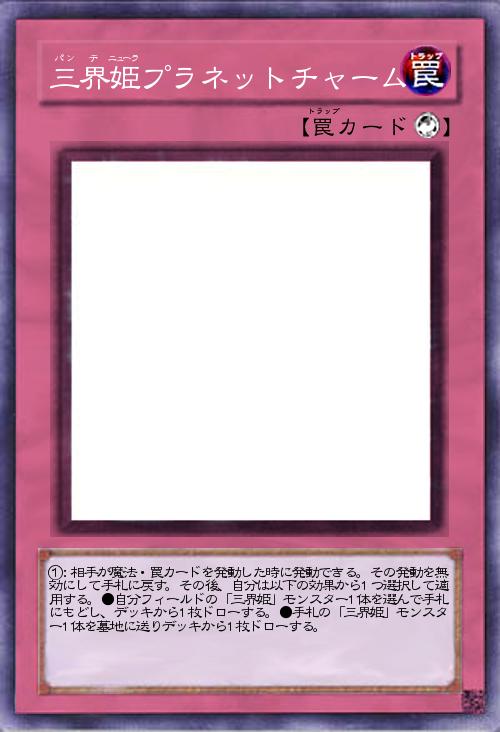 | ①:相手が魔法・罠カードを発動した時に発動できる。その発動を無効にして手札に戻す。その後、自分は以下の効果から1つ選択して適用する。●自分フィールドの「三界姫」モンスター1体を選んで手札にもどし、デッキから1枚ドローする。●手札の「三界姫」モンスター1体を墓地に送りデッキから1枚ドローする。 | |||