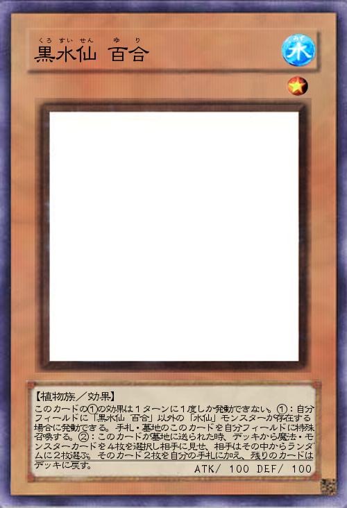 | このカードの①の効果は1ターンに1度しか発動できない。①:自分フィールドに「黒水仙 百合」以外の「水仙」モンスターが存在する場合に発動できる。手札・墓地のこのカードを自分フィールドに特殊召喚する。②:このカードが墓地に送られた時、デッキから魔法・モンスターカードを4枚を選択し相手に見せ、相手はその中からランダムに2枚選ぶ。そのカード2枚を自分の手札に加え、残りのカードはデッキに戻す。 | |||