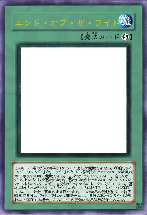 | このカ-ド名の①の効果は1タ-ンに1度しか発動できない。①自分フィ-ルド上に「ワイト」か、「ワイト」のカ-ド名が記されたモンスタ-が表側表示で存在する時に発動できる。自分のデッキをシャッフルし、自分のデッキの上から1枚を墓地に送る。墓地に送られたモンスタ-がレベル1のアンデット族モンスタ-なら、自分はデッキからカ-ドを1枚ドロ-する。墓地に送られたモンスタ-が「ワイト」なら、さらに相手フィ-ルド上に存在するカ-ドを全て裏側のまま除外する。この効果の発動後,タ-ン終了時まで自分は「ワイト」でしか攻撃できない。自分の墓地に「ワイト」が6枚以上存在する場合、このカ-ドの発動と効果は無効化されない。 | |||