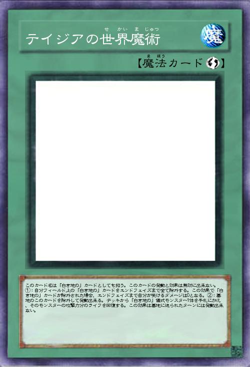 | このカード名は「白き地の」カードとしても扱う。このカードの発動と効果は無効に出来ない。 ①:自分フィールド上の「白き地の」カードをエンドフェイズまで全て除外する。この効果で「白き地の」カードが除外された場合、エンドフェイズまで自分が受けるダメージは0となる。②:墓地のこのカードを除外して発動出来る。デッキから「白き地の」儀式モンスター1体を手札に加え、そのモンスターの攻撃力分のライフを回復する。この効果は墓地に送られたターンには発動出来ない。 | |||