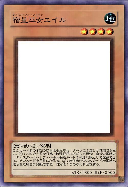 | このカード名の①②の効果はそれぞれ1ターンに1度しか使用できない。①:このカードが召喚・特殊召喚に成功した場合、自分の墓地の「ディスターニー」フィールド魔法カード1枚を対象として発動できる。そのカードを手札に加える。②:表側表示のこのカードが墓地へ送られた場合に発動できる。自分は1000LP回復する。 | |||