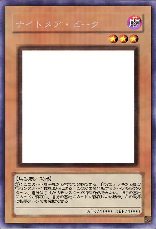 | ①:このカードを手札から捨てて発動できる。自分のデッキから闇属性モンスター1体を墓地に送る。この効果を発動するターン及び次のターン、自分は手札からモンスターを特殊召喚できない。相手の墓地にカードが存在し、自分の墓地にカードが存在しない場合、この効果は相手ターンでも発動できる。 | |||