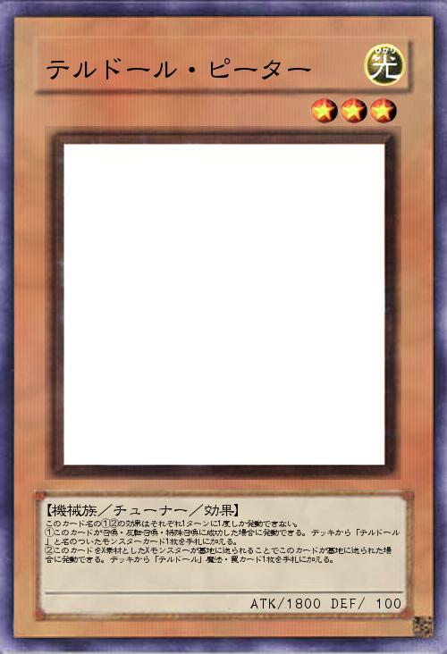 | このカード名の①②の効果はそれぞれ1ターンに1度しか発動できない。 ①このカードが召喚・反転召喚・特殊召喚に成功した場合に発動できる。デッキから「テルドール」と名のついたモンスターカード1枚を手札に加える。 ②このカードをX素材としたXモンスターが墓地に送られることでこのカードが墓地に送られた場合に発動できる。デッキから「テルドール」魔法・罠カード1枚を手札に加える。 | |||