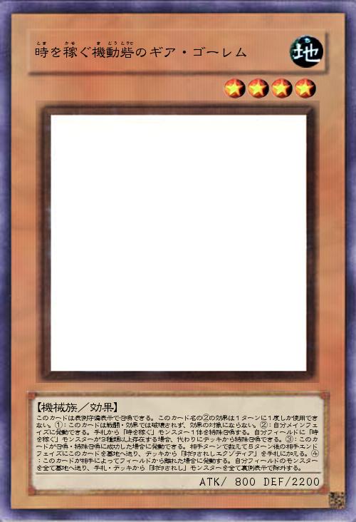 | このカードは表側守備表示で召喚できる。このカード名の②の効果は1ターンに1度しか使用できない。①:このカードは戦闘・効果では破壊されず、効果の対象にならない。②:自分メインフェイズに発動できる。手札から「時を稼ぐ」モンスター1体を特殊召喚する。自分フィールドに「時を稼ぐ」モンスターが3種類以上存在する場合、代わりにデッキから特殊召喚できる。③:このカードが召喚・特殊召喚に成功した場合に発動できる。相手ターンで数えて5ターン後の相手エンドフェイズにこのカードを墓地へ送り、デッキから「封印されしエクゾディア」を手札に加える。④:このカードが相手によってフィールドから離れた場合に発動する。自分フィールドのモンスターを全て墓地へ送り、手札・デッキから「封印されし」モンスターを全て裏側表示で除外する。 | |||