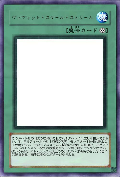 「幻蝶の刺客アゲハの必殺技をカードにしました。幻蝶の刺客モンスターの攻撃力か守備力分だけ相手モンスターを1ターン弱体化、相手がレベル・ランク4以上のモンスターを特殊召喚した際に600バーンダメージを相手に与えます。」(2020-11-07 23:18)