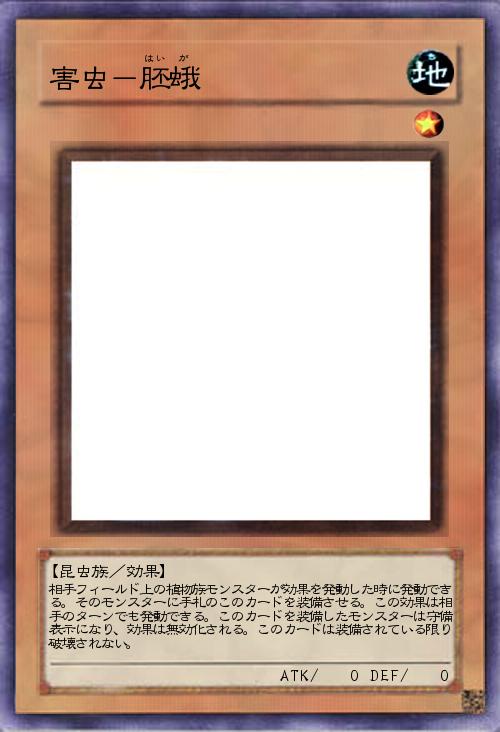 | 相手フィールド上のモンスターが効果を発動した時に発動できる。そのモンスターに手札のこのカードを装備させる。この効果は相手のターンでも発動できる。このカードを装備したモンスターは守備表示になり、効果は無効化される。このカードは装備されている限り破壊されない。 | |||