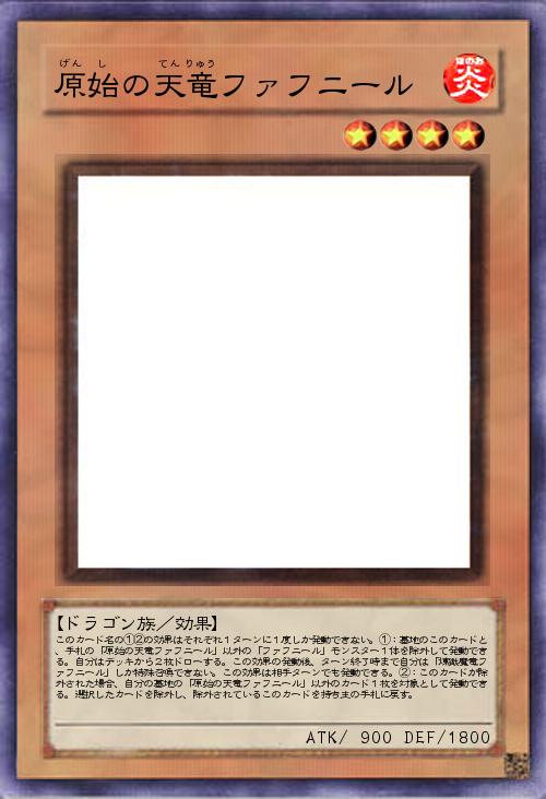 | このカード名の①②の効果はそれぞれ1ターンに1度しか発動できない。①:墓地のこのカードと、手札の「原始の天竜ファフニール」以外の「ファフニール」モンスター1体を除外して発動できる。自分はデッキから2枚ドローする。この効果の発動後、ターン終了時まで自分は「煉獄魔竜ファフニール」しか特殊召喚できない。この効果は相手ターンでも発動できる。②:このカードが除外された場合、自分の墓地の「原始の天竜ファフニール」以外のカード1枚を対象として発動できる。選択したカードを除外し、除外されているこのカードを持ち主の手札に戻す。 | |||